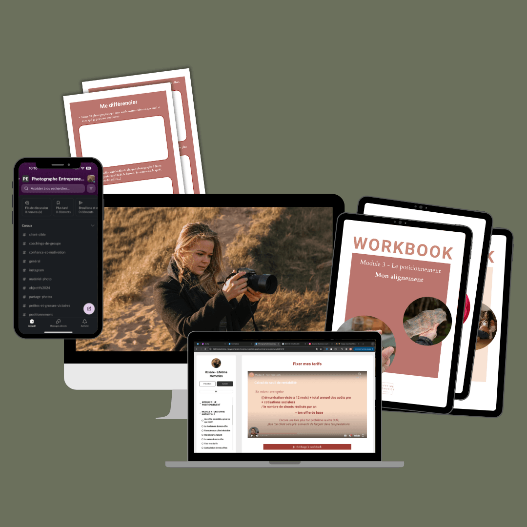 Deux accompagnements pour t'aider, pas à pas, à lancer et développer ton activité de photographe professionnel.